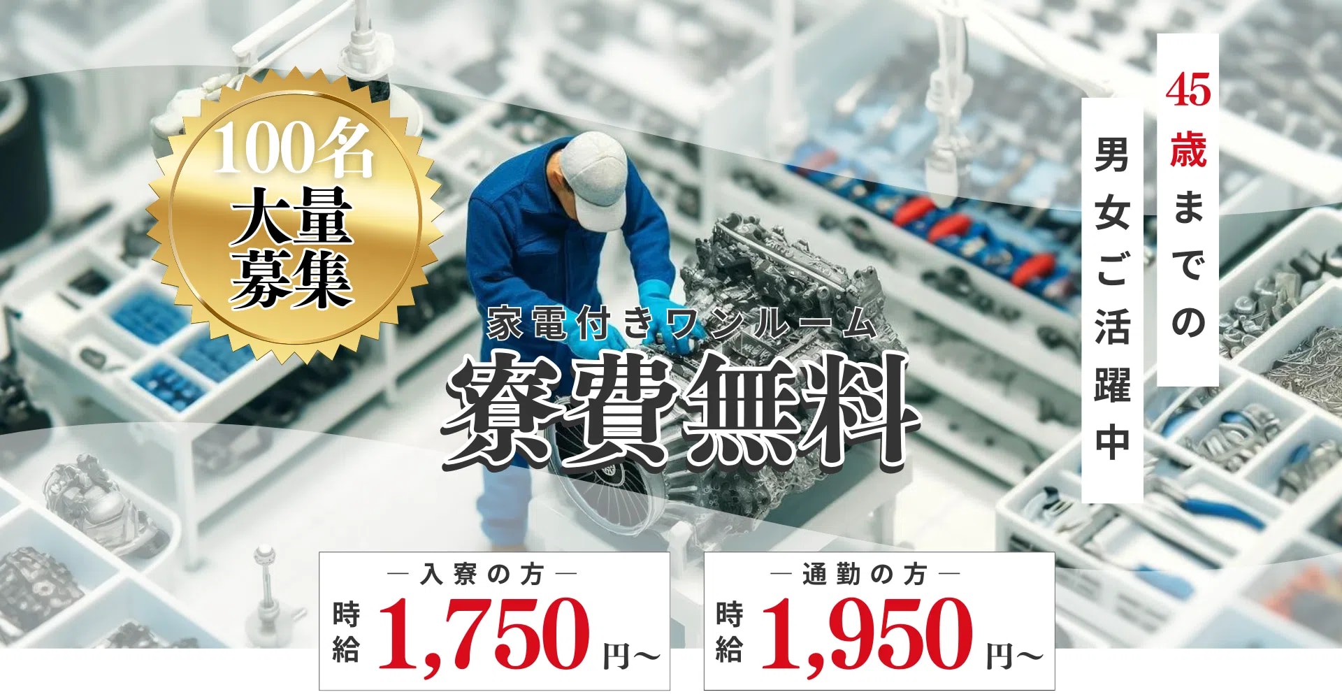 時給 1,750円 (入寮) 時給 1,950円 (通勤) |