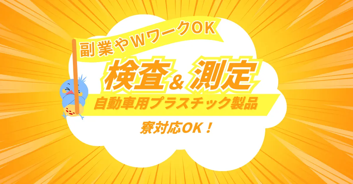 | 仕事内容 | / 検査、測定のお仕事 (学歴・経験不問) \ 【 お 仕 事 内 容 】 自動車用プラスチック製品の 検査・測定をお任せします! ⏬️具体的には… ★外観検査 自動車向けプラスチック製品の 目視検査をお願いします。 ★寸法測定 ノギスや3次元測定器を使いながら 寸法検査を行います。 ★パソコン操作 検査した結果(検査数・不良数・不良内容)を ノートパソコンやiPadを使用してExcelに入力します。 \ハローワークで仕事探し中の方必見!/ --------------------------------------------------------- 【 住 居 】 寮対応(一般賃貸物件)OK 寮費5~5.5万程度(自己負担) 駐車場/水光熱/Wi-Fi等は自己負担 テレビ・冷蔵庫・洗濯機・ レンジ・カーテン *場所により家具付きの場合あり --------------------------------------------------------- 今回ご紹介する就業先は トライボロジー(摩擦低減、低摩耗)技術で、 産業機器・OA機器・鉄鋼・造船など 幅広い産業界に向けて プラスチック商品を提供している 企業です。 --------------------------------------------------------- ❖派遣会社MantoMan 広島オフィス❖ 広島・山口市内の派遣はもちろん、 製造工場や倉庫内の軽作業、 事務・コールセンターなど ご希望条件に合うおシゴトを、 多数ご紹介させていただきます。 「こんな仕事ない?」 「こういう仕事がしたい!」など、 何でもお気軽にお問合せください◎ ■ オンライン・リモート面接対応■ 接続簡単なWEB面接が可能 LINE/FaceTime/zoom/Google Meet… 外出不要!ご自宅での面接が可能! 当社オフィスでの面接や お近くのファミレスや喫茶店など 直接現地面接にも対応可能です! ■ 赴 任 費 無 料 ■ 他県からの引っ越しを お考えの方もご相談ください♪ 赴任にかかった費用は当社が 負担いたします!! MantoMan 広島オフィスは 全力であなたをサポート致します(^^)/ --------------------------------------------------------- 検査|派遣|広島県 |