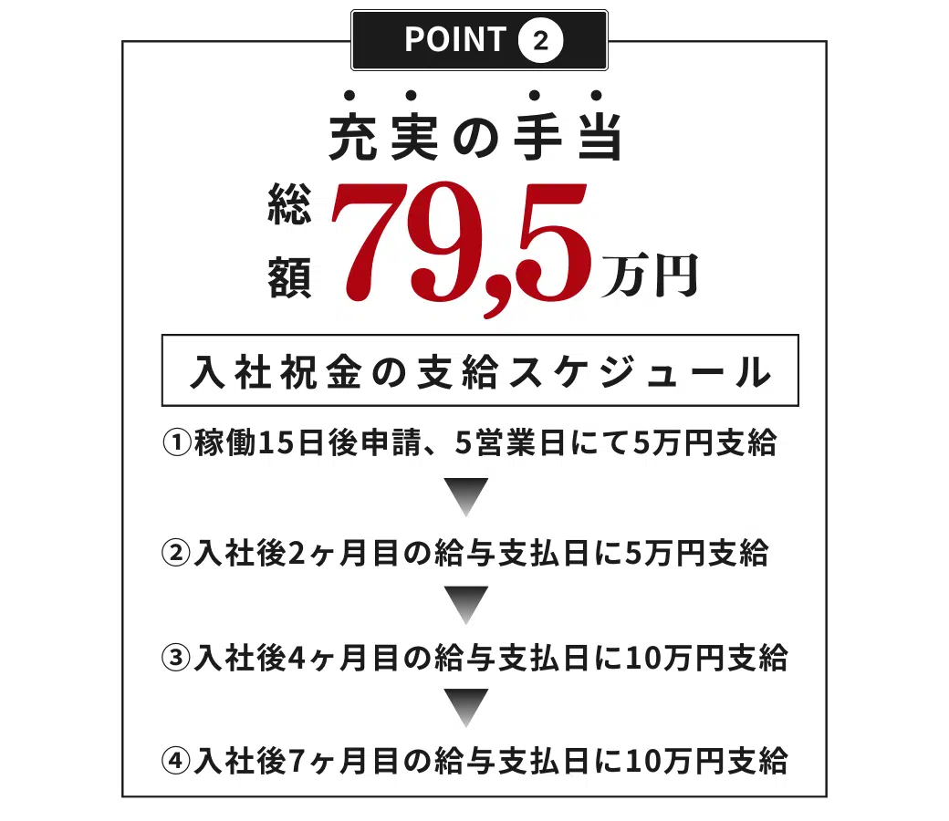 内訳:寮費補助 49.5万円・入社祝金 30万円