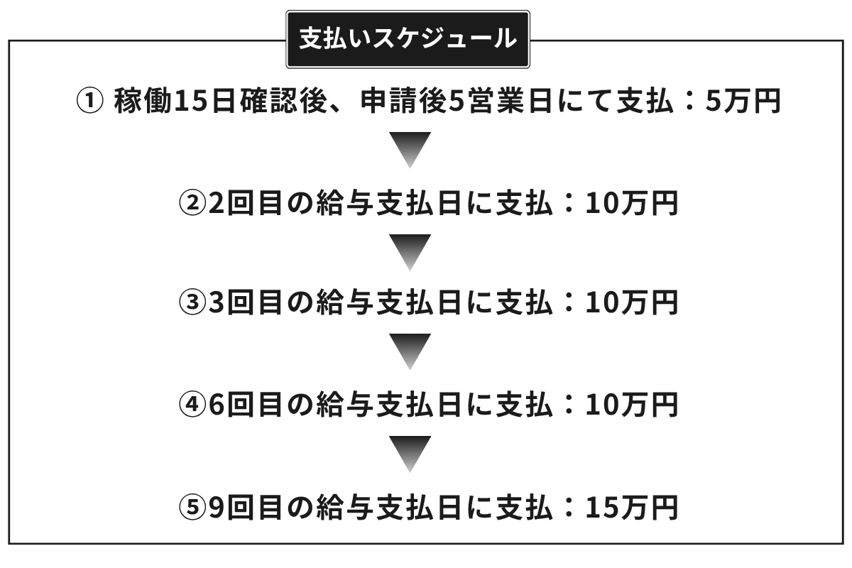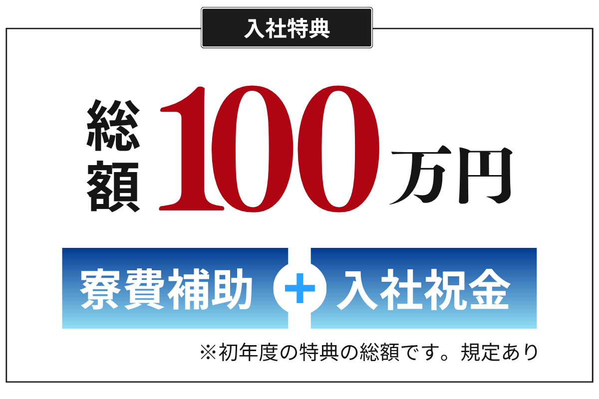 内訳:寮費補助 50万円・入社祝金 50万円