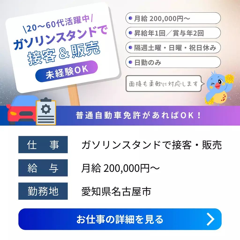 【愛知県名古屋市】自動車メンテナンス・車検スタッフ募集|未経験歓迎・年収350〜450万円愛知県接客正社員登用制度検査求人名古屋市シニア活躍中未経験者歓迎中高年経験不問ブランクOKシフト制家族手当交通費支給有給休暇昼勤(日勤)社会保険主婦・主夫歓迎女性活躍中男性活躍中派遣賞与名古屋オフィス2025-12-03 05:13