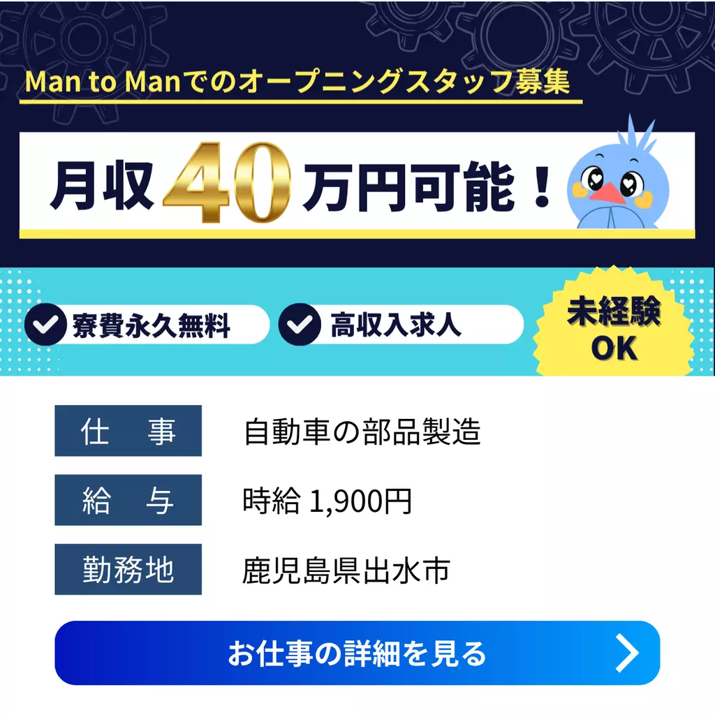 【愛知県名古屋市】月収27万円以上可!工場内作業スタッフ|日勤+寮完備+年休120日