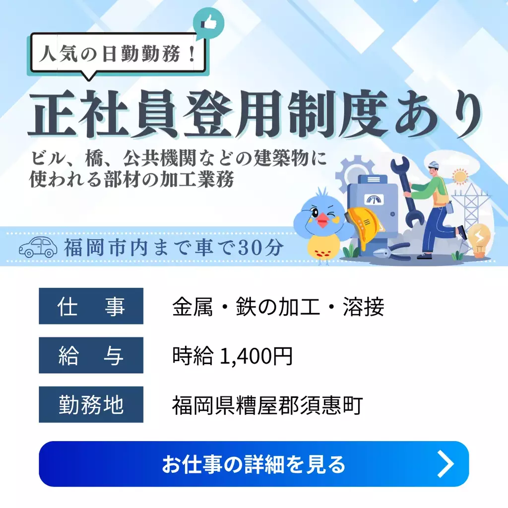 【福岡県糟屋郡須惠町】日勤&高時給1,400円~|未経験OKの製造スタッフ1400円以上1300円以上1200円以上福岡県正社員登用制度機械オペレーター高時給工場求人未経験者歓迎経験不問ブランクOK家族手当転勤なし交通費支給昼勤(日勤)資格不要土日祝休み社会保険派遣高収入北九州オフィス2025-10-14 08:12